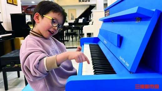 小朋友在位于长沙解放西路的海韵琴行内试琴。受访者 供图
