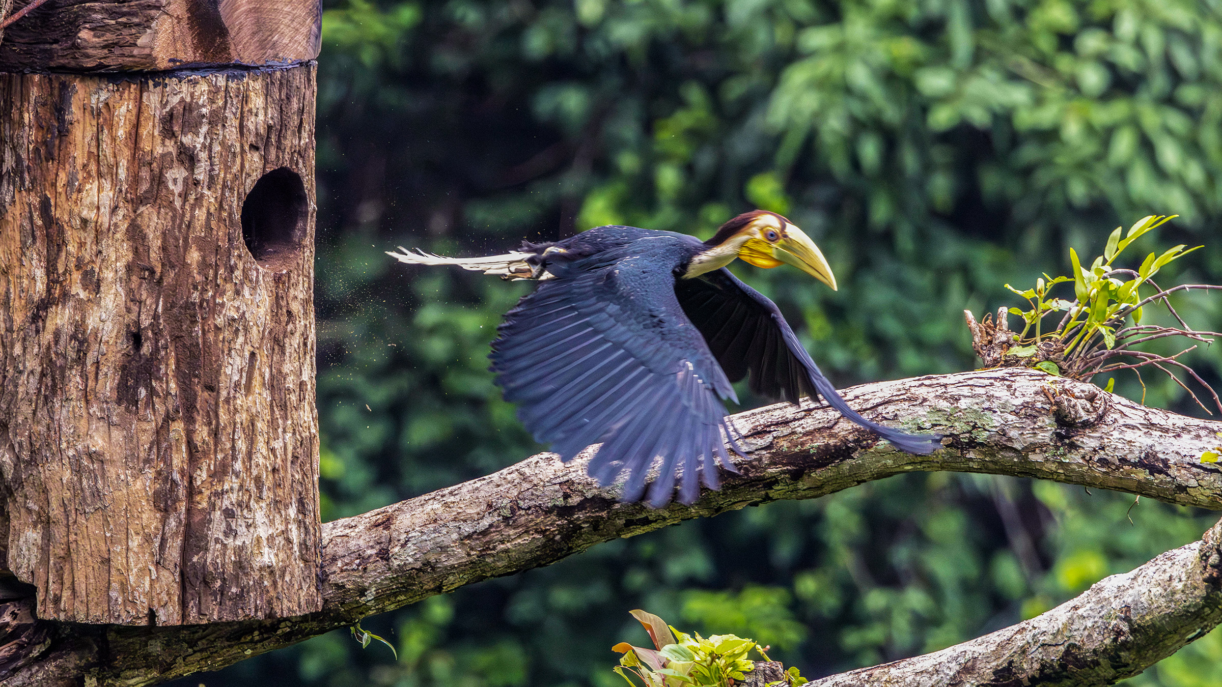 我国首次实现人工招引巢箱野外繁殖犀鸟
