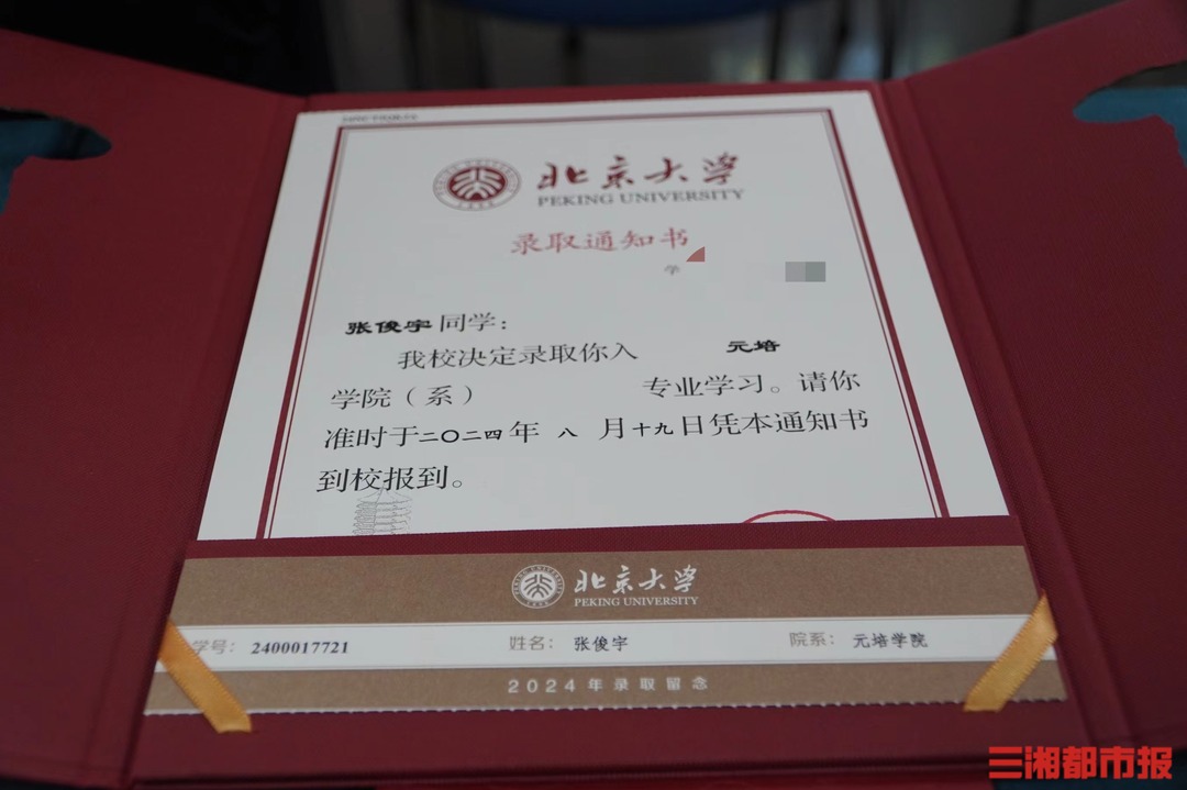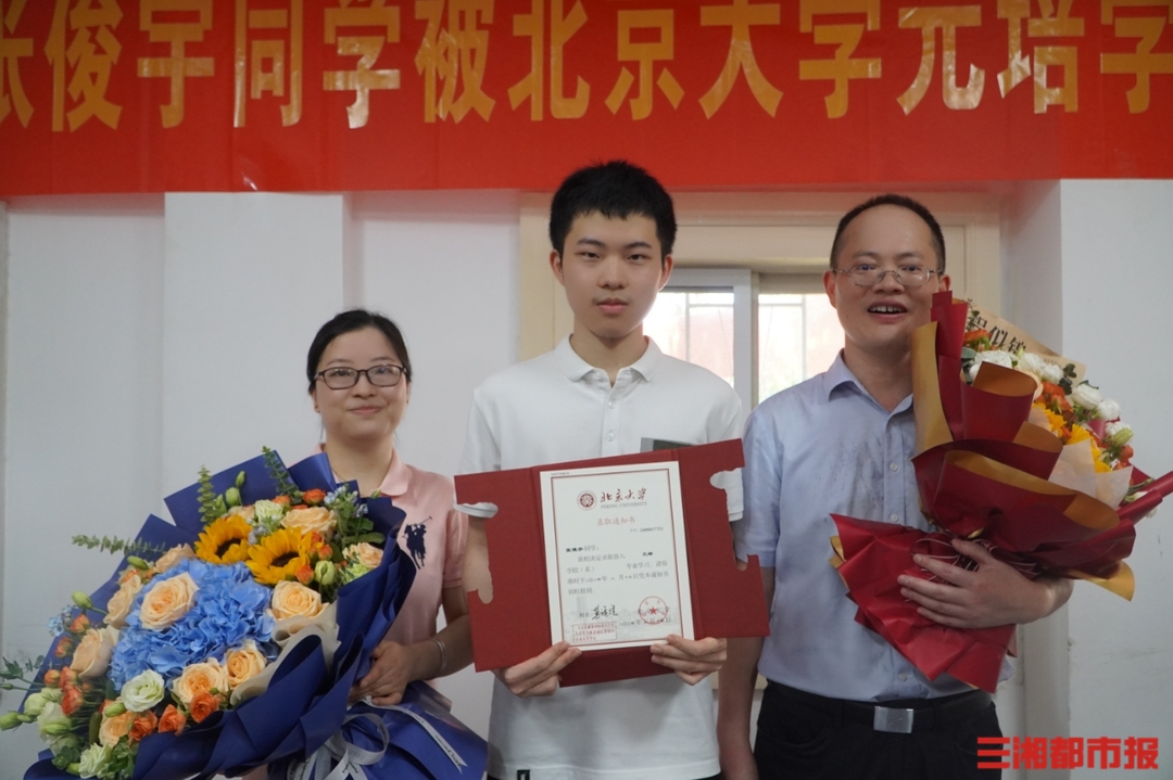 据悉,张俊宇因在第37届中国化学奥林匹克竞赛获得全国金牌入选化学国家集训队,同时获得北京大学报送资格,而他也是长沙今年首位收到大学录取通知书的“幸运儿”。