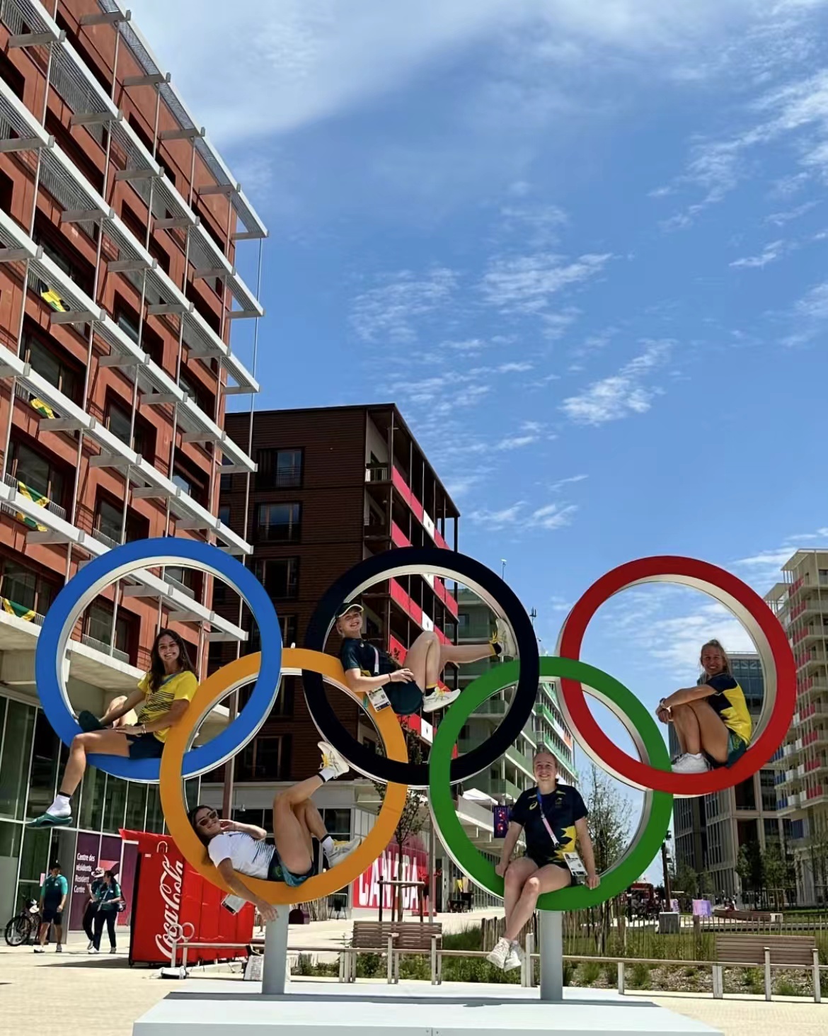 巴黎奥运村里的五环标志,成为各国运动员拍照打卡的地方