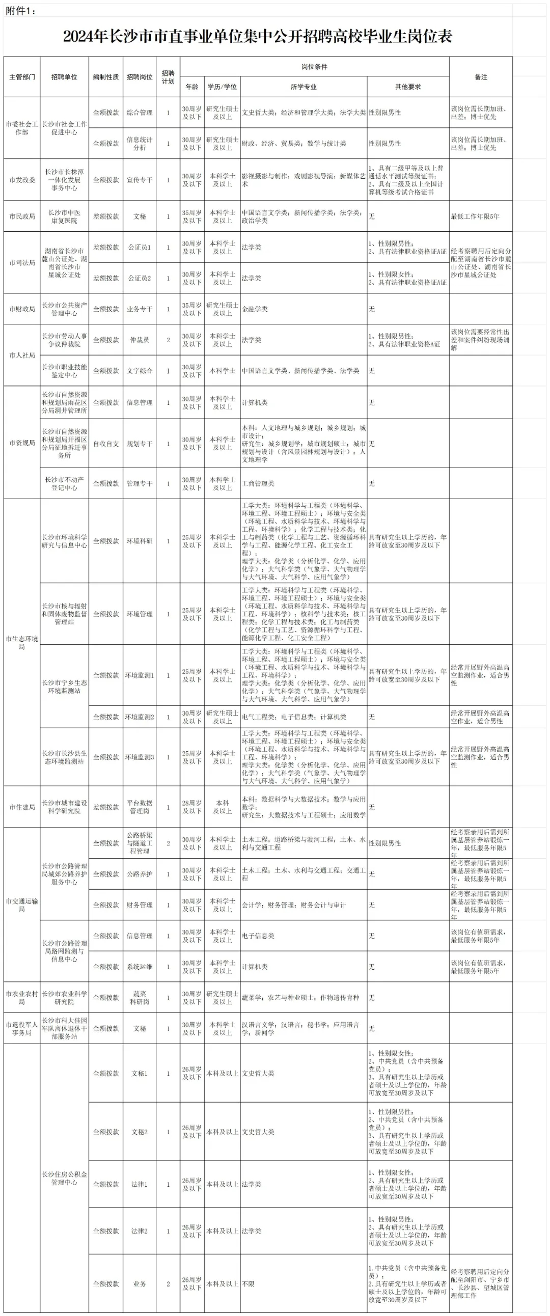 1.2024年长沙市市直事业单位集中公开招聘高校毕业生岗位表