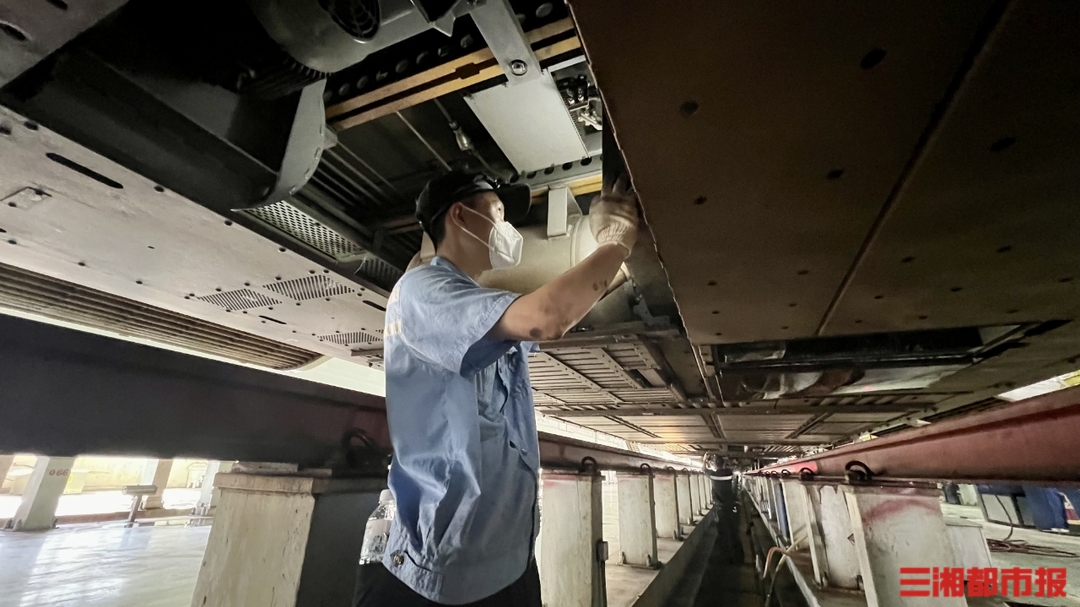“在夏季高温环境条件下作业,库内温度会达到40℃,工作环境相对恶劣。不过,每天,管理人员都会将清凉饮品、冰西瓜、冰豆沙等送到岗位,同时还配发防暑降温药品,做到应急有备。”长沙城际动车运用所党总支书记樊华介绍,管理人员和工班长会持续关注职工状态,如果发现有先兆中暑症状或精神状态不佳时,会立即安排职工退出工作岗位及时休息调整。