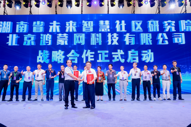 在此次论坛上,与会领导、嘉宾、现场以及直播间的参会代表共同见证湖南省未来智慧社区研究院与北京鸿蒙网科技有限公司战略合作正式启动,合作双方将发挥各自资源优势,共同推进湖南省智慧社区(乡村)实验室示范项目建设,在一年的时间内,打造五到八个“政府满意、居民乐意、企业愿意"智慧社区平台示范点。