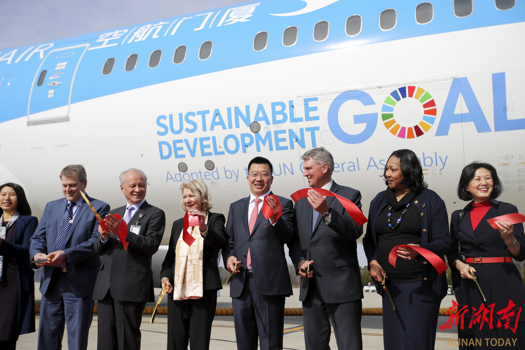 当地时间2019年7月11日,在美国纽约联合国总部,厦航董事长、党委书记赵东再次见到了联合国副秘书长艾莉森·斯梅尔。他们上一次相聚,是前一年在美国举行的首架支持联合国可持续发展目标涂装飞机交付仪式上。这架飞机后来被厦航命名为“联合梦想号”,并依托厦航通达全球的航线网络将可持续发展理念撒播至世界各地。