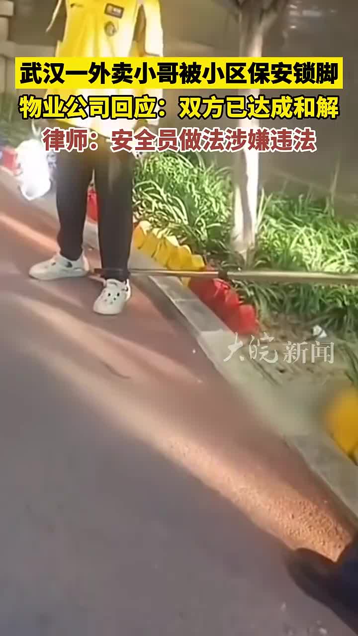 24日,记者了解到,事发地为湖北武汉光谷汇景小区,事发时间是7月23日。一位当地的外卖小哥告诉记者,他在骑手群里看到了那段视频,显示一名穿着外卖骑手服装的男子的左脚脚踝被一个有长柄的工具夹住,而这个工具握在一名穿着疑似保安制服的男子手中。