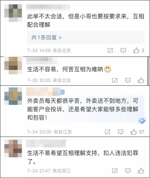 不仅如此,据《人民法院报》,重庆市璧山区人民法院审结了一起外卖合同纠纷案。因外卖骑手未将餐食送至订单指定地点,而是放在小区的集中存放处或保安室,引发顾客不满。法院审理后认为,平台应当承担违约责任。