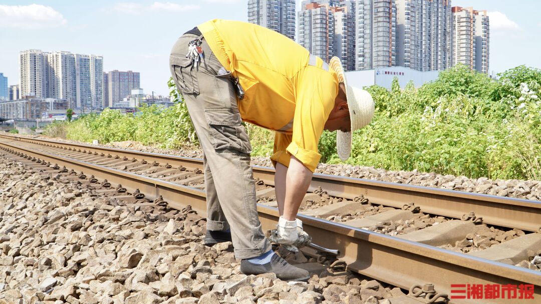 “左轨50.3℃,右轨49.5℃。”7月23日13时2分,正值烈日暴晒之际,长沙工务段长沙线路车间客站维修工区工长、党支部书记钱磊打开手机,报出轨温报警的消息。