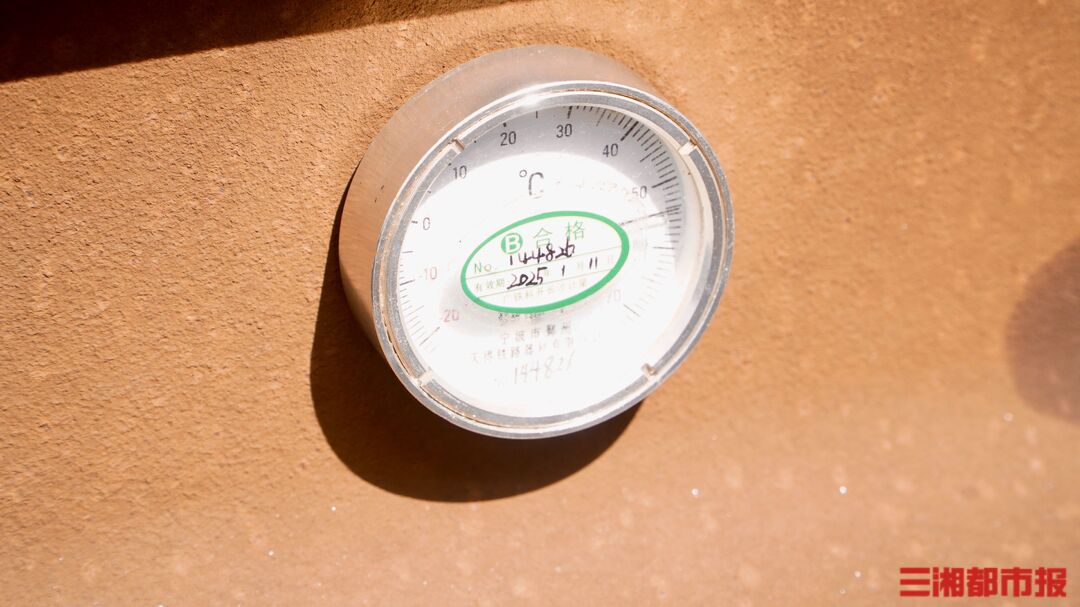 身着黄色工服,他在阳光直射下显得格外黝黑。来不及多说,钱磊一脚跨上铁轨,进行测量实时温度。“你看,温度已经54℃了。”数分钟后,钱磊拿着温度计说。