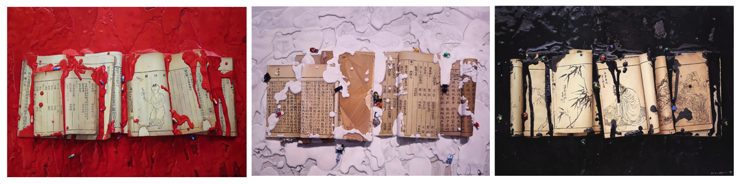 毋庸置疑,李海华的“纸鹤”是他艺术创作阶段的代表作品。在这一批作品中,浓缩了他精湛的艺术技艺、精心的图式设定和深藏的价值观念。他曾提到,“纸鹤”这一意象,最初是来自于他对一堆鸟笼的写生,破乱的鸟笼让他触景生情,不由得寄托了自我的状态,于是,这样一组意象就成为其表达“自由与禁锢”的通道。不过,人生的阅览使得他逐步认知到,生活的禁锢有时候并不能找到一个具体的、固定的“鸟笼”,而是像风、像水、像气息一样的流体状态浸润与侵蚀人的身体和思维。于是,他逐步建立起流体与纸鹤、流体与竹石、流体与书本、流体与5G芯片等等意象的视觉关联,使他在再现、表现和表达之间随心穿梭,构成了一种独特的图式语言和观念形态。