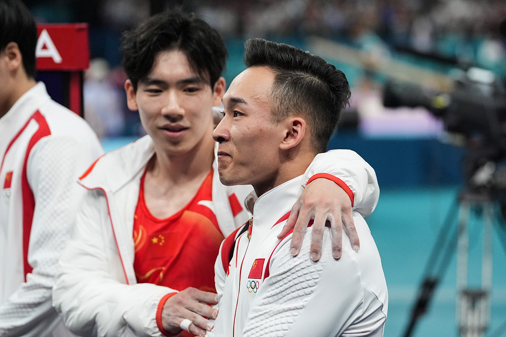 东京奥运会上,中国体操男队在男子团体的比赛中摘得一枚铜牌。如今来到巴黎,队伍还是遗憾未能将铜牌的颜色变成金色。