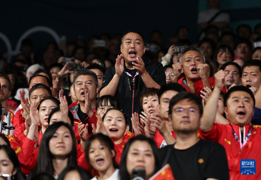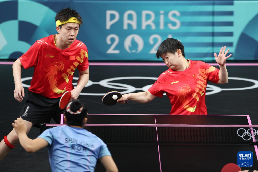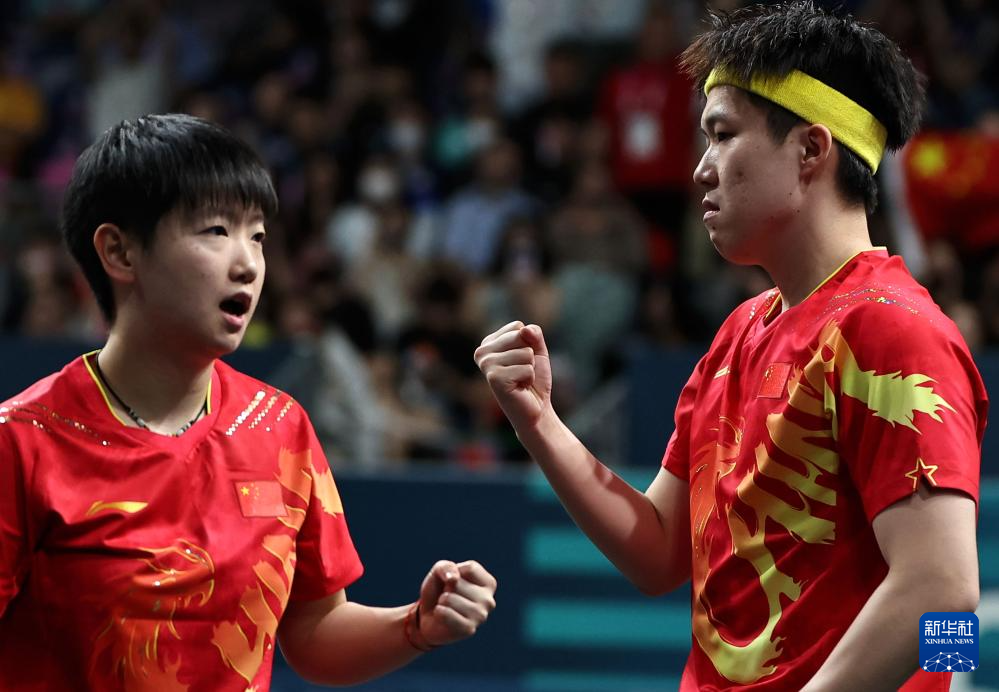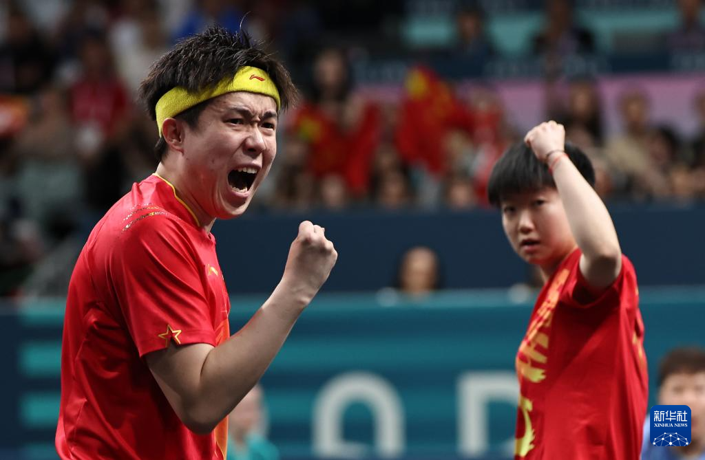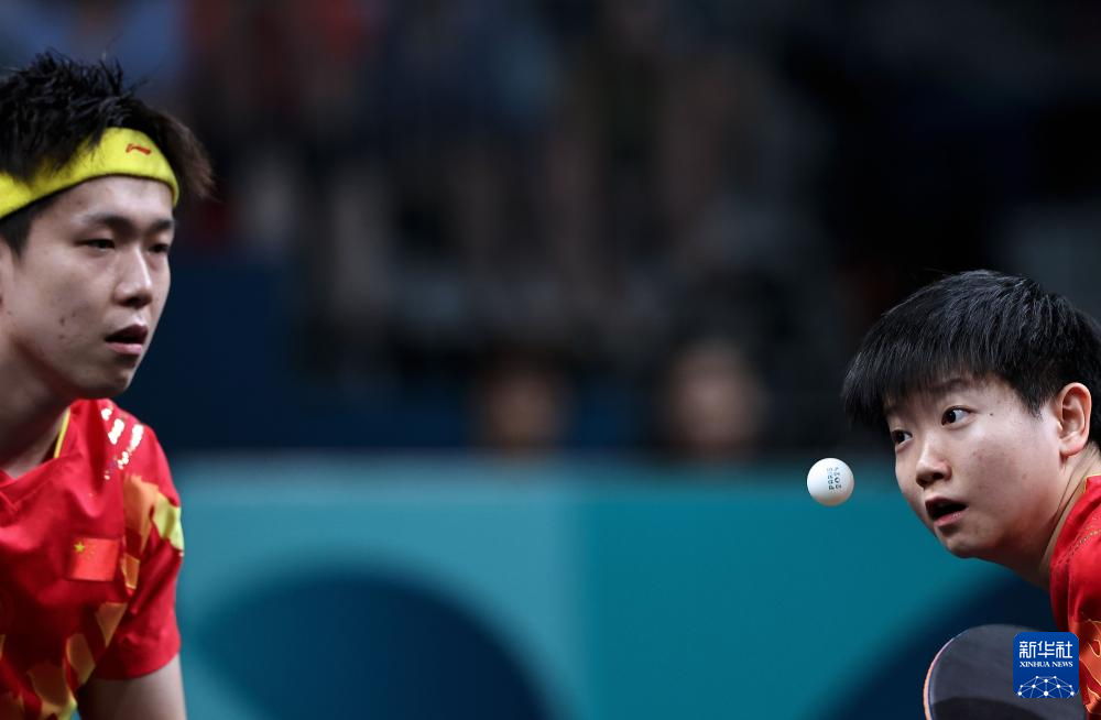 当日,在巴黎奥运会乒乓球混双半决赛中,中国组合王楚钦/孙颖莎4比2战胜韩国组合林钟勋/申裕斌,晋级决赛。新华社记者 刘续 摄