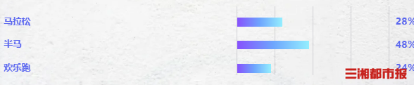 在本届长马所有报名选手中,男性选手占比约70%,女性选手约30%,其中,马拉松项目男女比例约8比2;半程马拉松项目约7比3;欢乐跑约5比5。预报名选手涵盖各年龄段,“80后”报名最踊跃,约占总人数的37%,其次是“70后”与“90后”,分别约占25%与21%。