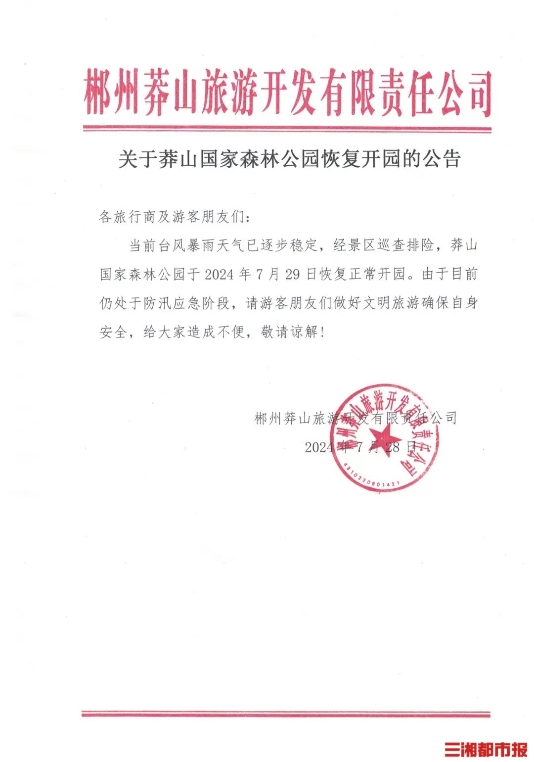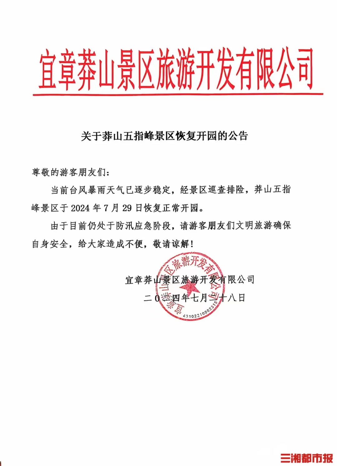 三湘都市报·新湖南客户端7月30日讯(全媒体记者 曾冠霖 整理)近日,受台风“格美”影响,湖南多家景区临时闭园。随着天气形势好转,目前,湖南部分景区已达到正常开放标准,正式恢复开放。