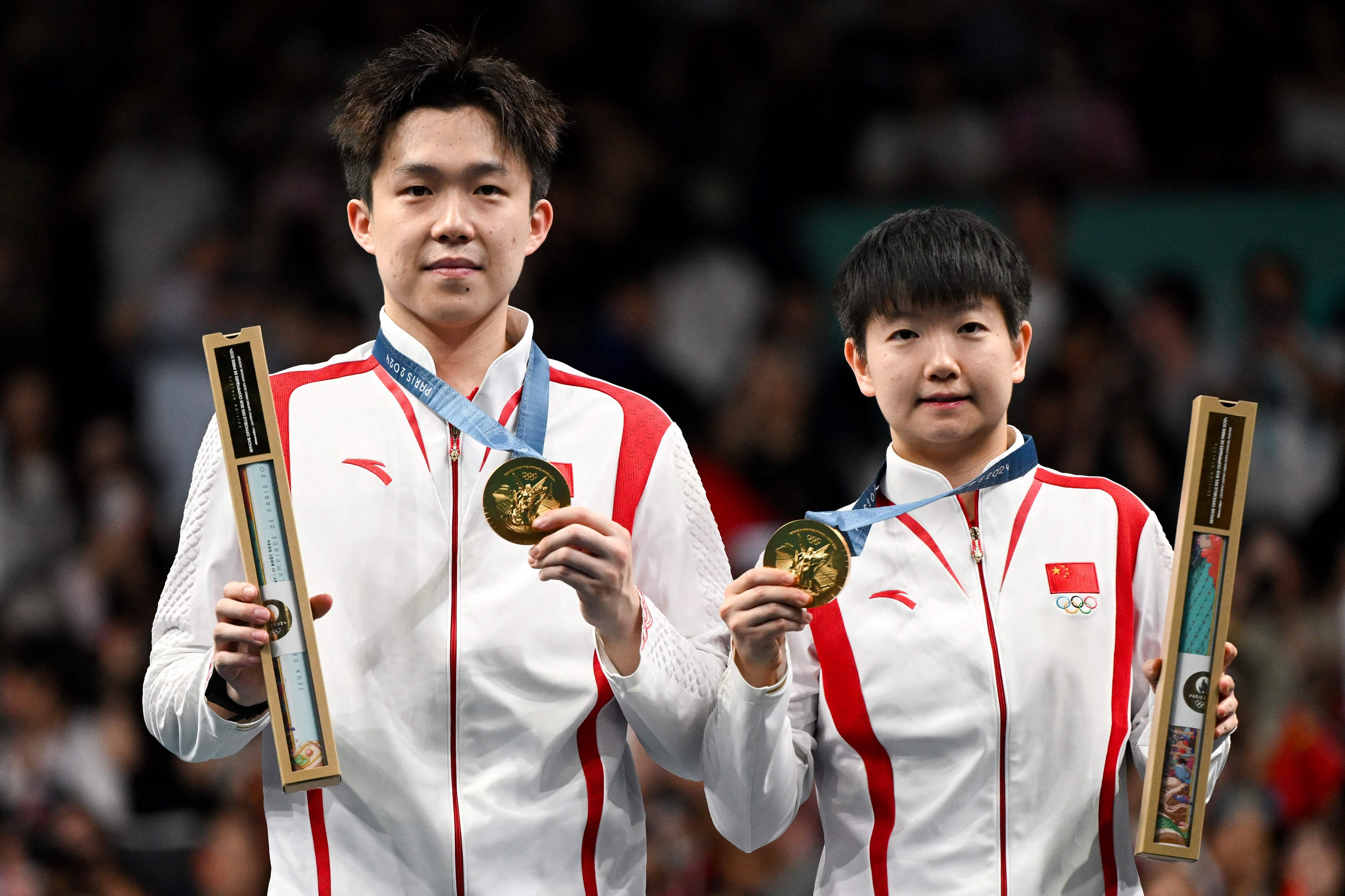 乒乓球混合双打比赛中,“莎头”组合——王楚钦/孙颖莎4比2战胜朝鲜队,夺得冠军。这是国乒在巴黎奥运会的首块金牌,也是中国队在奥运会混双比赛中的首枚金牌。