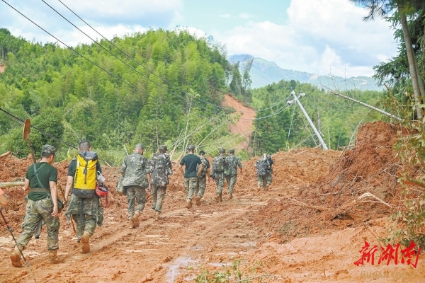 7月30日,湖南日报全媒体记者跟随救援队伍,分别乘坐直升机和徒步前往,直击救援现场。
