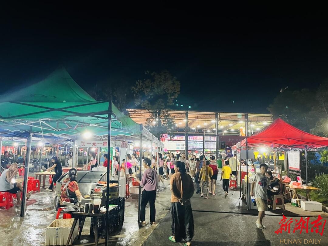 随着篮球赛的持续进行,每天晚上都有大批观众到场观赛,充足的客流量让赛场周边的商铺、美味小吃摊销售额接连攀升,小龙虾、凉粉、烧烤等美食让游客们连连叫好,丰富有趣的儿童玩耍项目让小朋友们流连忘返,市民游客乐享其中,带动地摊经济持续火热。