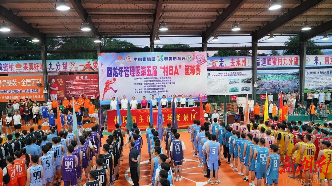 新湖南客户端7月31日(通讯员 李世峰 刘永锋)晚风徐来,夜幕初临。每到这时,就到了永州市回龙圩管理区居民日常散步的时间。而在暑期,许多居民却有了不同往日的选择:前往篮球场,观看一场紧张刺激的篮球赛。第五届“回龙圩村BA”篮球赛于7月22日开幕,12支球队展开激烈角逐,带动了全民健身,更丰富了回龙圩的夜生活内涵。
