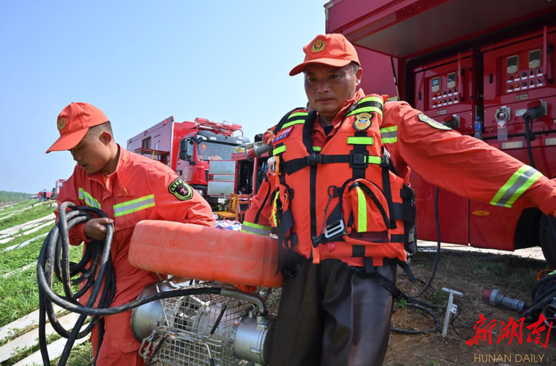 增援华容的第21天,40℃的高温令人感到明显的压迫感,现场活跃的一些野外“狠角色”,也为排涝任务平添了不少难题。郴州消防的“毛哥”每次在作业前都反复叮嘱着大家安全注意事项。