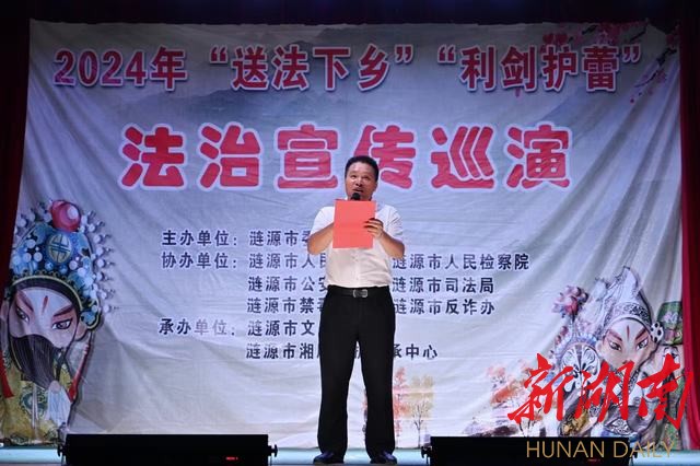 新湖南客户端7月24日讯(通讯员 彭诗媛 熊泽平)“走,到集祥社区看演出去!”7月22日晚,涟源市杨市镇“法行乡间润民心,利剑护蕾助成长”平安建设宣传演出活动在镇集祥社区广场拉开序幕,吸引了来自各村(社区)、各行业等200余人来参加活动观看演出。