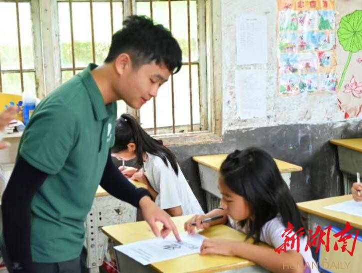 新湖南客户端7月19日讯(通讯员 殷超 田甜 李家涛 摄影 张莫婷 胡雪)为贯彻落实绿色低碳发展理念、提高农村儿童的节能减排意识,2024年7月,湖南科技大学砖注智矿节能减排团队(以下简称“实践团”)前往湖南省邵阳市洞口县古楼乡中心学校开展为期7天的暑期“三下乡”社会实践活动,将环保课堂带进乡村小学。