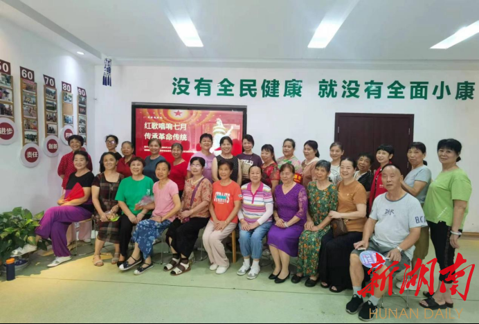 新湖南客户端7月15日讯(通讯员 丁洁)7月12日上午,一场激情澎湃的“红色歌曲唱响七月·传承革命传统”活动在岳龙社区居家养老服务站举行,吸引了众多参与者,共同用激昂的歌声抒发对党的热爱和对革命传统的敬意。