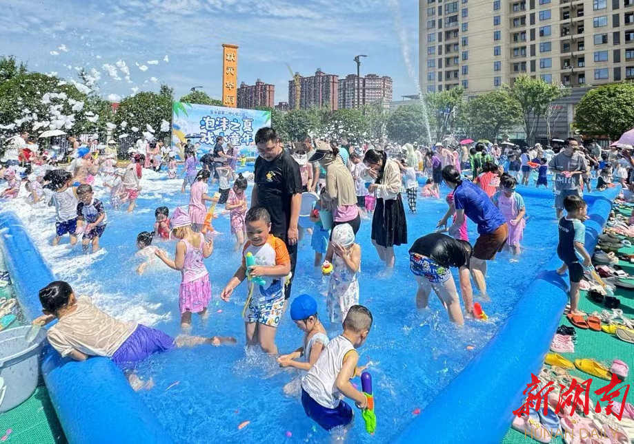 新湖南客户端7月13日讯(通讯员 汪梦娇)“玩什么才能既有趣又消暑?亲子泡泡狂欢冰爽来袭,阳光、水枪、漫天飞‘雪’,这才是打开夏天的正确方式!”近日,安乡县第二中心幼儿园开展了“泡沫之夏·戏水童年”亲子活动,让新奇有趣的泡泡狂欢在这个炎热的夏季,带给孩子们一份独特的清凉。