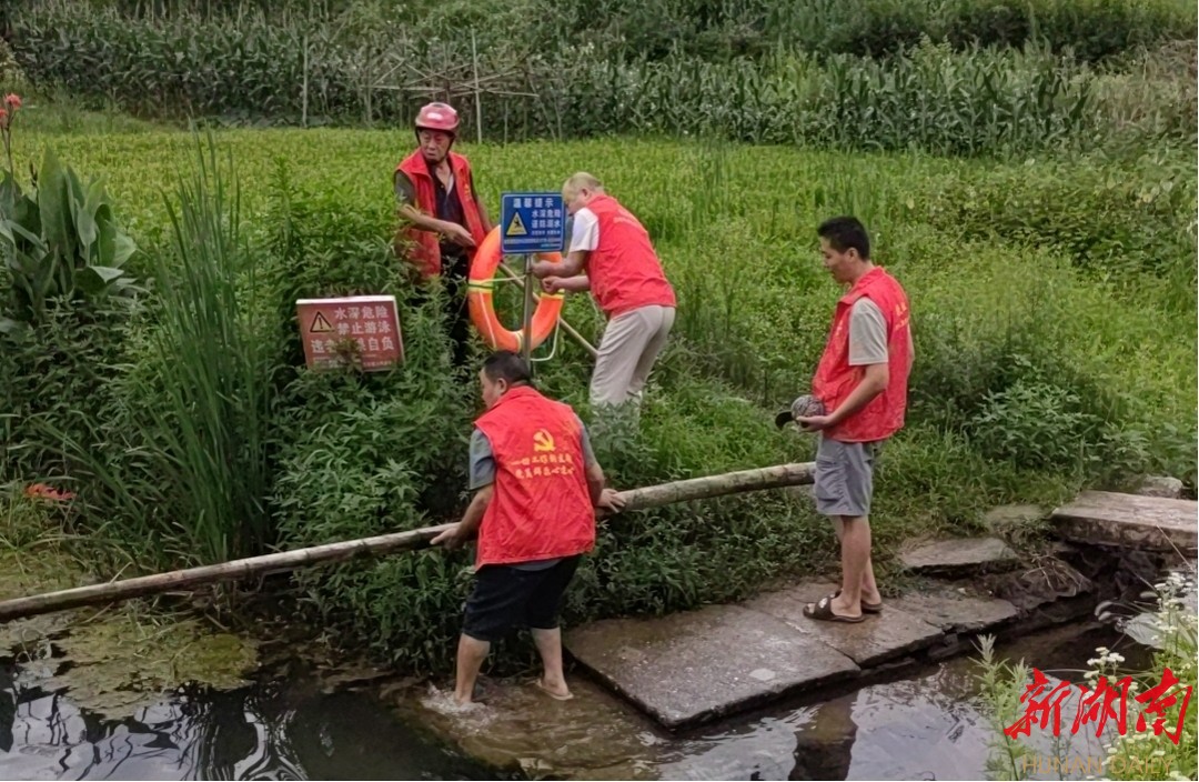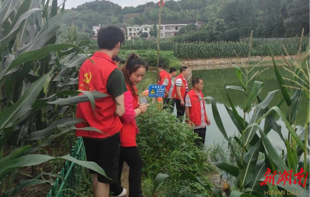 (党员志愿者结合“涟源先锋行万人大巡逻”活动检查水塘、沟渠)