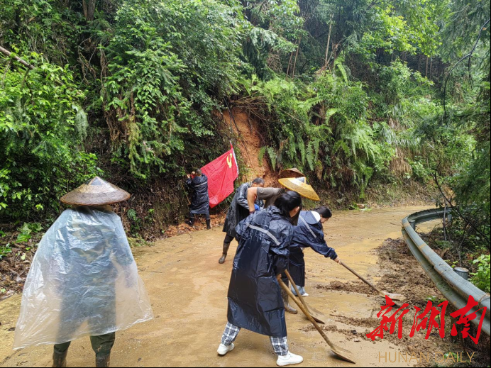 渠阳镇江东便民服务中心党总支始终坚持“身在一线”,充分发挥“战斗堡垒”作用,广泛组织凝聚党员干部群众力量参与设置警示标志、清理疏通河道、清理路障等,带头冲锋在前、担当作为,在防汛抗灾工作一线树旗帜、亮身份、作表率,以实际行动引领群众合力抗灾。