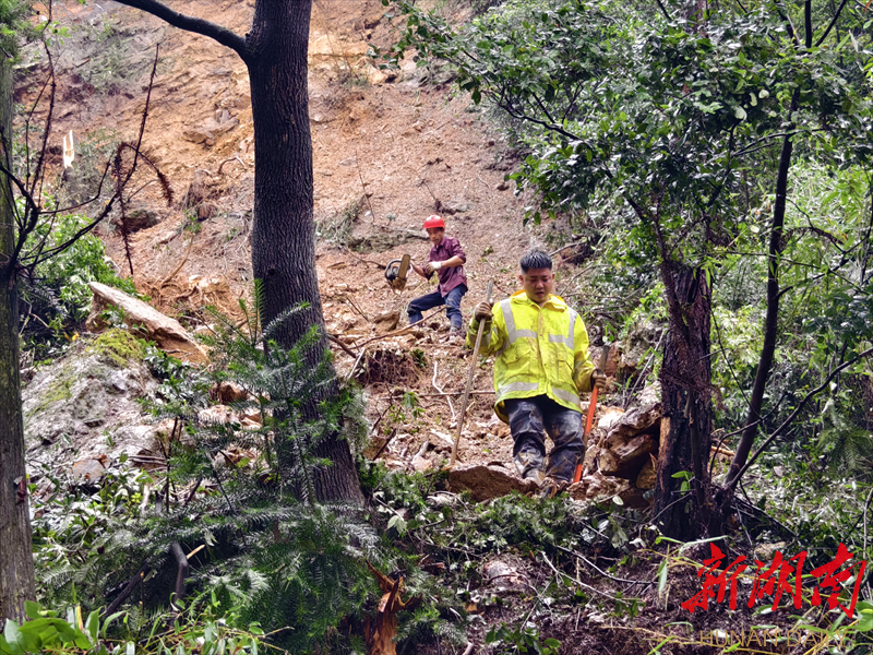 6月30日上午,在排查过程中,合盛村二支部的几名党员发现合盛大道上被暴雨冲刷倒伏在道路中央的树木影响交通。他们当即在路段两侧设立安全提示牌,并向邻近农户家借来砍柴刀,冒雨清理树枝,通过半小时的共同努力让道路重新恢复了通畅。