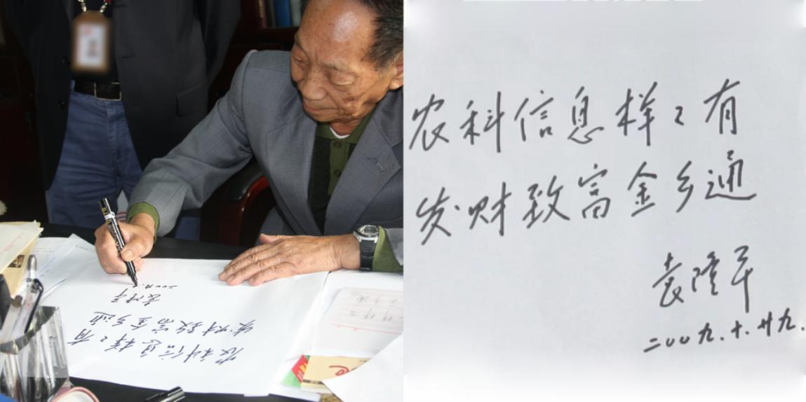 图为“杂交水稻之父”袁隆平院士亲笔题写“金乡通”品牌