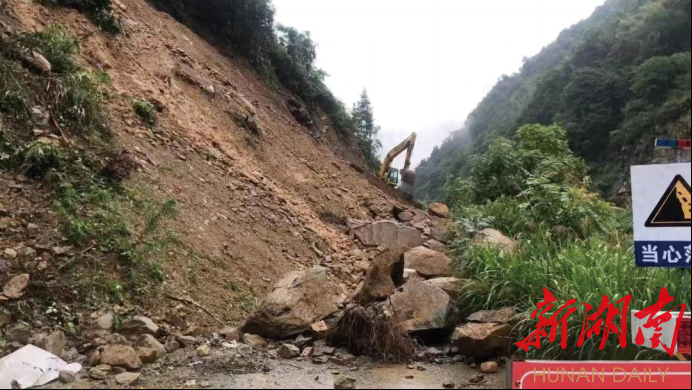 新湖南客户端7月1日讯(通讯员 胡仲科 杨尚勤)连日来,受持续强降雨影响,娄底市新化县S240省道多处路段发生塌方、冲毁等险情,交通一度中断。湖南建投交建公司G59新新段湖南高速组团方二标项目部在接到新化县高速公路建设指挥部有关险情后,迅速成立“自然灾害与工程应急救援队”火速前往水车镇和槎溪镇两地塌方现场开展应急抢险,历经4天奋战,于6月28日中午顺利完成抢通任务。