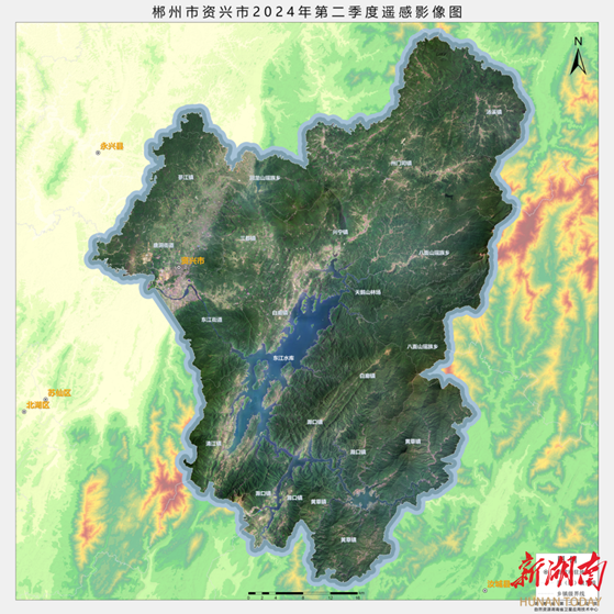 省第二测绘院遥感统筹部副部长杨凯钧说:“我们为资兴紧急提供了2024年第2季度1米影像(资兴市全覆盖约2747平方千米),紧急调度在轨卫星资源拍摄了14景亚米级可见光约1000平方千米”。