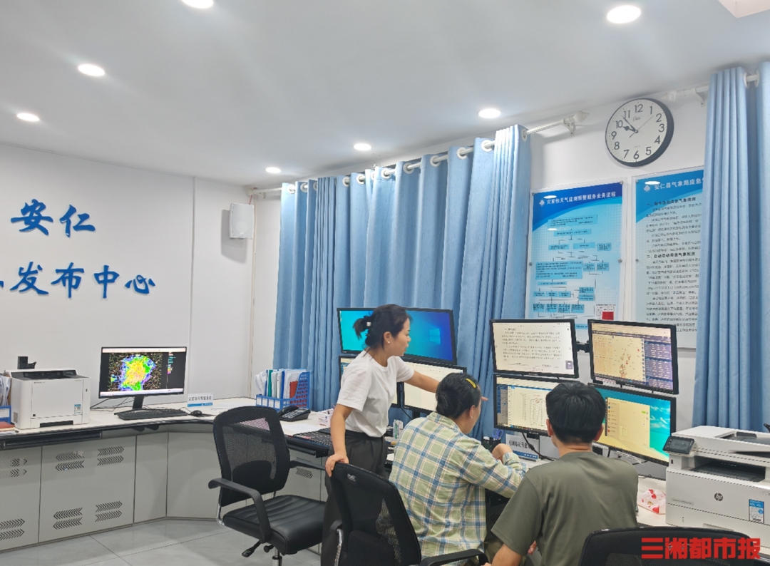 “面对‘格美’的步步紧逼,我们早在7月23日便发布了《台风天气信息专报》,精准预判了风雨的到来。”安仁县气象局局长唐志红告诉记者,在26日,随着暴雨的临近,安仁县气象局进入“战时状态”,气象部门同事连续72小时坚守岗位,将每小时降雨量、降雨极值及未来1小时、3小时精准预报推送至“安仁应急工作群”。