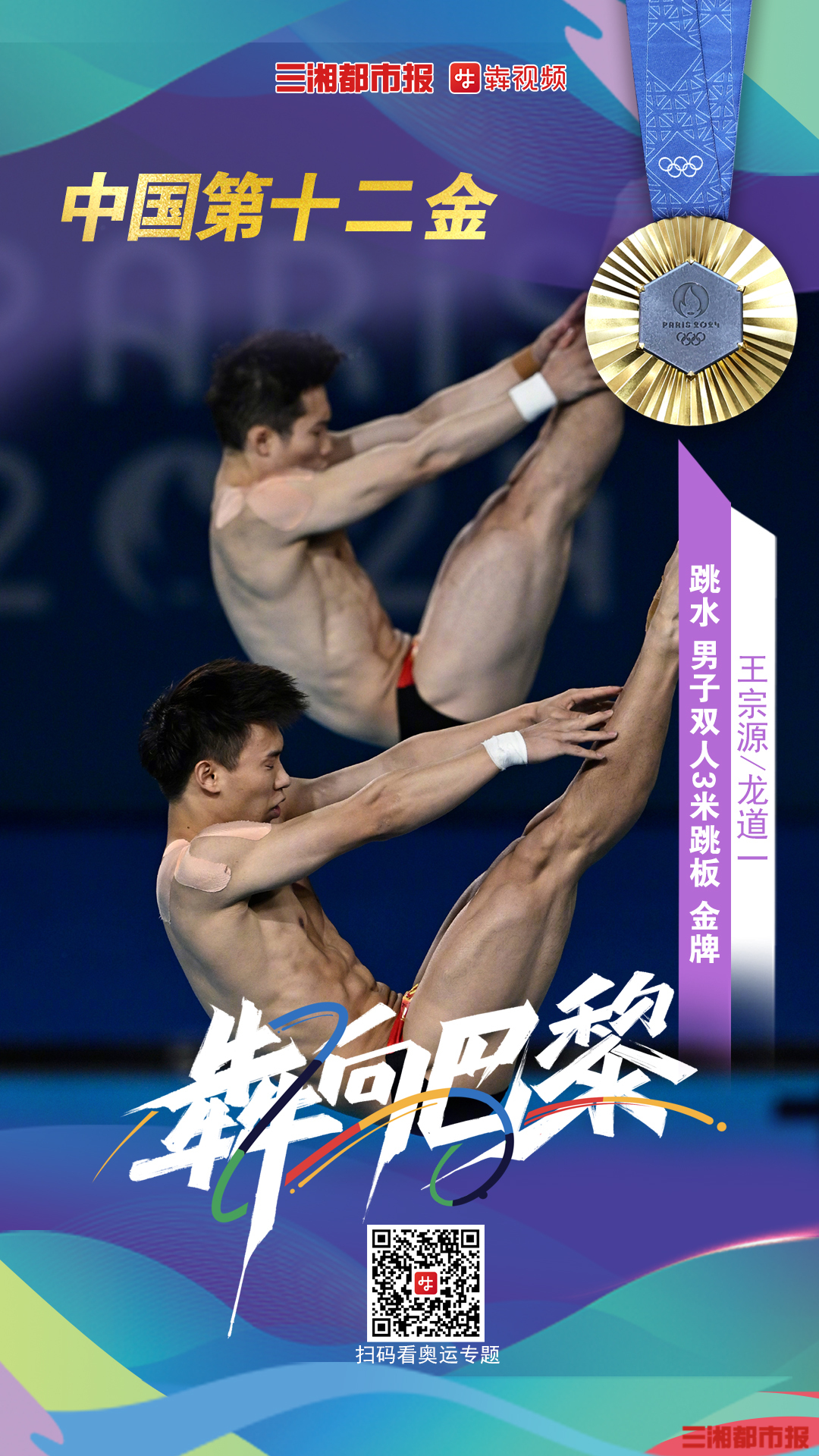 犇向巴黎·海报丨祝贺,第12金!王宗源/龙道一夺得跳水男双三米板冠军