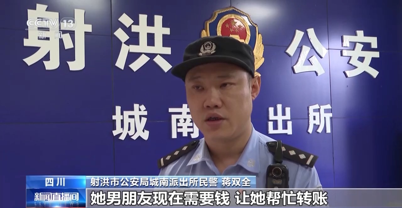 射洪市公安局城南派出所民警 蒋双全:我们当时向她询问具体情况的时候,她只说这是她的男朋友,她男朋友现在需要钱,让她帮忙转账,但是她拒绝说这个男朋友是做什么工作的。