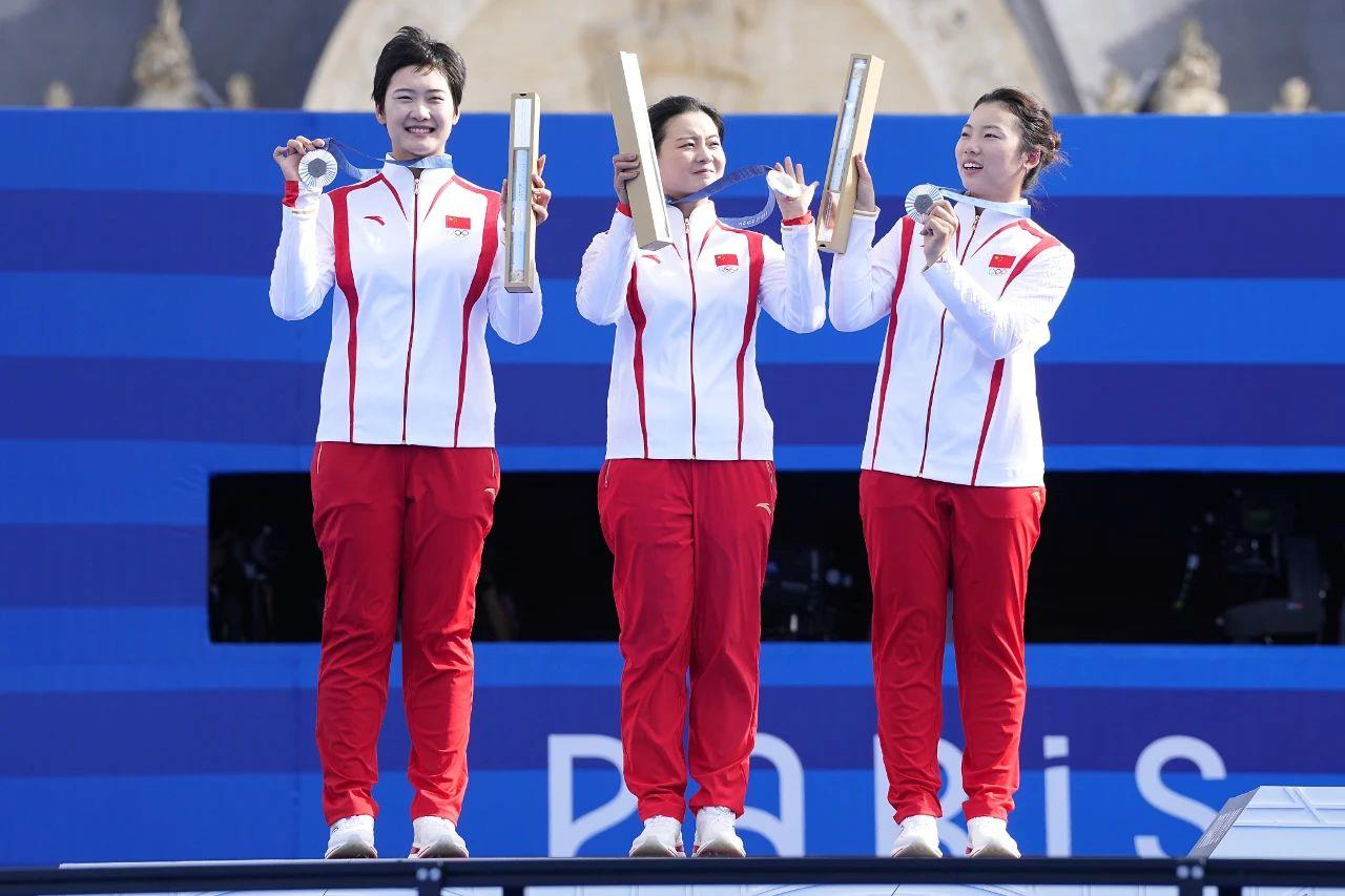 射箭女子团体决赛,由安琦轩、杨晓蕾和李佳蔓组成的中国队以4比5不敌射箭“霸主”韩国队,获得亚军。