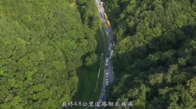 这时等不及的游客开始步行离开,导致4.8公里的道路上游客越来越多,接送游客的摆渡车无法前进,人车混杂的道路上发生交通事故,游客拦路导致接送游客摆渡车里不出外不进,阻拦4.8公里路上所有车辆通行,导致游客认为景区没有安排好接送车辆,摆渡车只能在4.8公里半路掉头,接路上有限的游客,最终4.8公里道路彻底瘫痪。