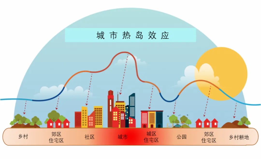 城市热岛效应示意图。图片来源:Gosmartbricks