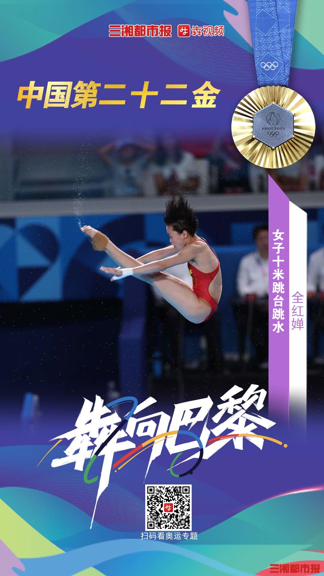 犇向巴黎•海报|祝贺!全红婵夺得跳水女子十米台金牌