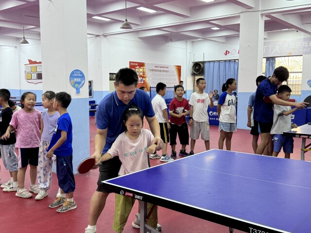 与此同时,在雨花区体和家乒乓球训练基地砂子塘馆内,授课老师吴德斌正手把手地教小朋友们如何接发球,几位小朋友正拿着拾球器,一按一提,收获了满满一网兜的球。其他小朋友们分列两队,手握球拍,依次上前摆好架势,蓄势待发。“他是一个小球迷,很喜欢‘大头’和莎莎,这段时间一直积极守在电视前观看奥运会。”在一旁等待的家长柴女士说。