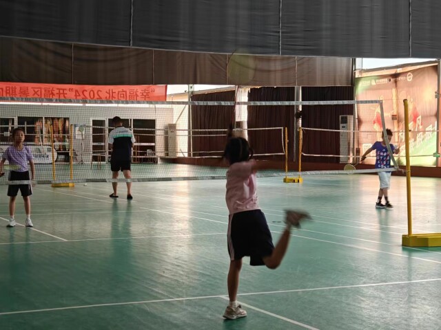 “啪”一声清脆的声音划破空气,羽毛球划出一道弧线,飞向对方场地……下午3时,开福区羽小动羽毛球馆内,孩子们灵活移动步伐,随时准备应对对方的攻势。