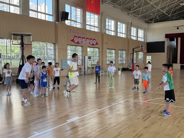 9时30分,从长沙各地因相同兴趣汇聚在芙蓉区育才第三小学体育馆的孩子们,手握彩色跳绳在空中开心跳跃。他们围成一个圆形,一板一眼学着站在圆心的“小小示范员”的动作。据了解,该场地每周会开放25个名额,来上课的都是零基础的小学生,“小小示范员”不过才11岁,刚上一周课的她已经能熟练地掌握基础的花样跳法了。“跳绳还是和大家一起跳才有意思!”一位小男孩蹦蹦跳跳地向记者分享,汗珠一粒粒从额头上滚落,衣服也被浸湿,但能感受到他高昂的热情。