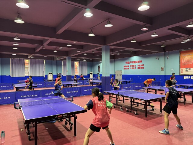 发球、挥拍、击球……各项动作一气呵成。记者走进湖南师大附中体育馆乒乓球训练基地,“乒乒乓乓”清脆的击球声此起彼伏,现场24张球桌分列四行,现场近50名球员都在各自桌前都上演着激烈的对决。尽管已是暑期,乒乓球队的孩子们几乎每日都在这里为了梦想而挥拍。“这几天的奥运我都有在关注,太震撼人心了!”该校乒乓球队员柳煜轩感叹道,他从小学一年级开始打乒乓球,从一开始的感兴趣到越来越热爱,国球精神在他心中扎了根。