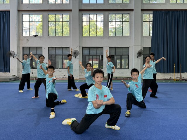 “加油!精气神要出来!再坚持一下!”转身踏入长沙麓山国际实验学校的武术队训练场地,一股磅礴的气势扑面而来,进行暑期集中训练的队员们,每人正陆续演示南拳、南棍、剑术等一个整套的武术动作。夏日炎炎,场馆内12台风扇、2台空调呼呼地吹着,队员们小脸布满汗珠,满满的认真。“他们刚刚打完国家级比赛,拿了好成绩,接下来还有比赛,热情度高涨。”该校武术队教练王帆介绍,每年会参加多场赛事,暑期每天训练6小时,强度较大,但孩子们都能坚持完成每天规定的训练量。