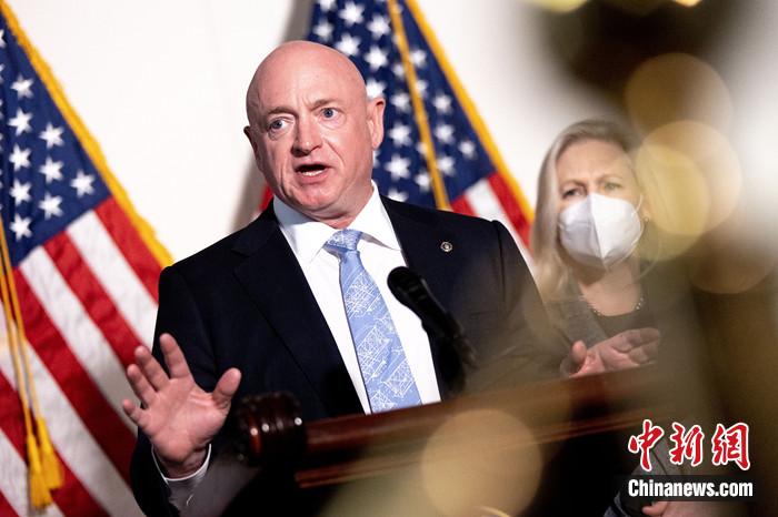 当地时间2022年2月,来自亚利桑那州的民主党参议员凯利在新闻发布会上发表讲话。