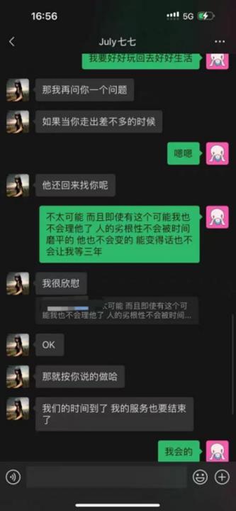 陪聊师与顾客之间存在某种粘性,会像朋友家人一样习惯性地聊天,我不知道怎么去处理这种突然建立的亲密关系,更害怕以后这种雇佣关系结束时因为不能再像这样聊天而难过,所以我会及时抽离。后来再遇到客人问我个人信息,我就会插科打诨,也更加注重陪聊师的边界感。