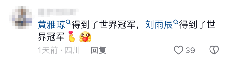 随后,黄雅琼通过个人社交媒体表达了自己赢得金牌并被现场求婚的感受:“巴黎赛场上有掌声,有汗水,也有我们用一生爱一人的承诺。”刘雨辰也转发了此条动态表达爱意:“你是世界的冠军,更是我的冠军,也是我此生唯一。”