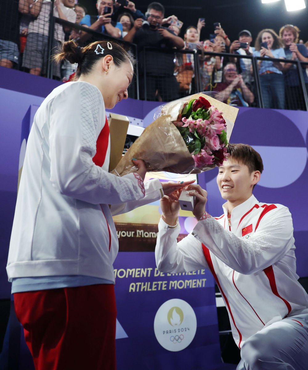 ↑8月2日,刘雨辰(右)向黄雅琼求婚。新华社记者 陈斌 摄