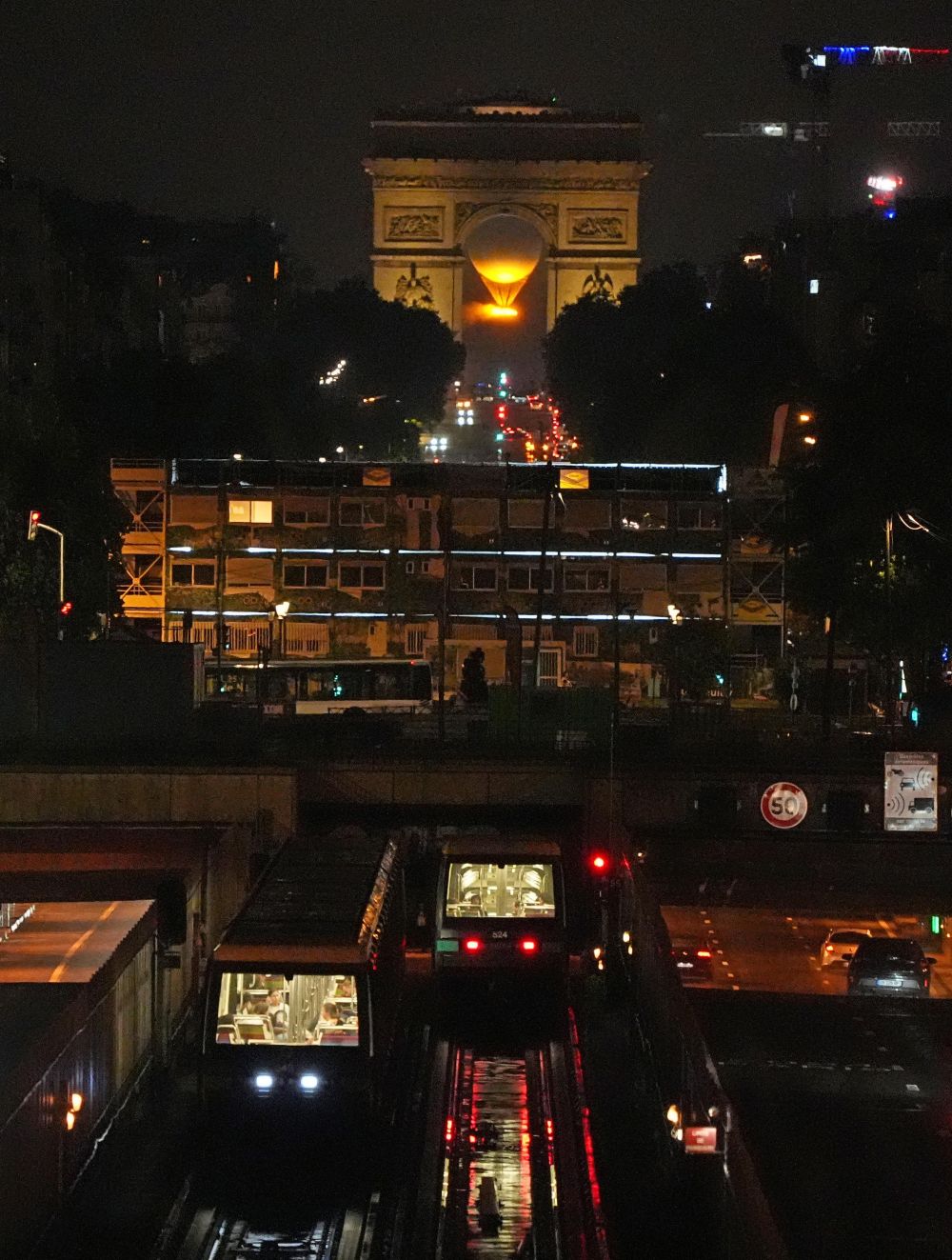 开幕式上主火炬热气球从杜乐丽花园缓缓腾空人们乘坐汽车和地铁地下桥上,穿梭而行一切似乎如往常一样而盛宴正在这座城市里上演