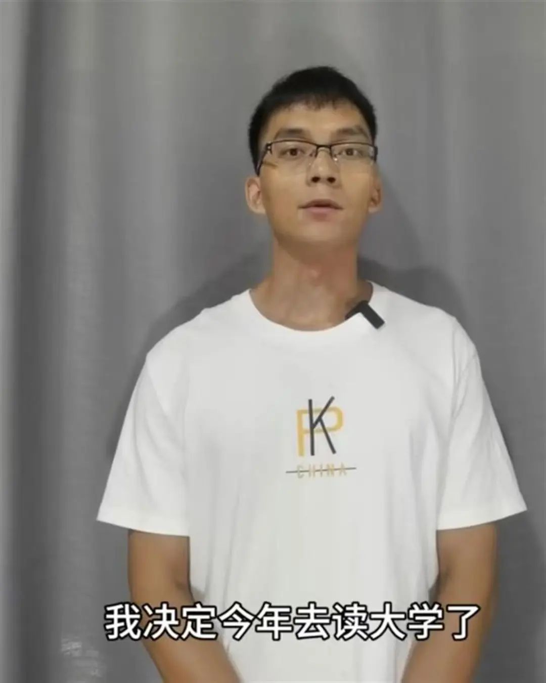 他在视频中说:“高考的帷幕已经落下两个多月,大学也几近开学,经过这一段时间的思考和衡量,我决定结束这漫长的高中生活,开启新的人生篇章,我决定今年去读大学了。纵有千般不舍、万般不甘,留下的遗憾可以到大学慢慢的弥补,曾经的梦想可以到大学再去追逐。”